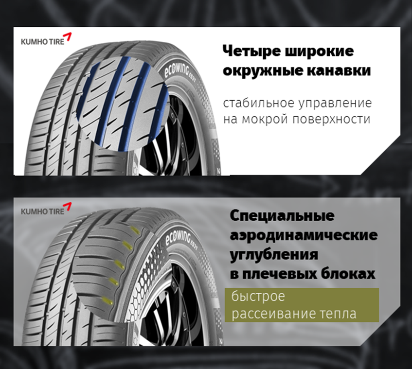 Kumho Ecowing ES31 — летняя шина для легковых автомобилей, ориентированная на экологичность, экономию топлива и комфортное вождение.